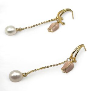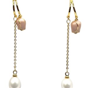 7 – 8 mm White Pearl Tulip Dangling Earrings