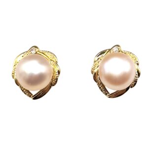 8 – 9 mm Champagne Pearl Leaf Shaped Earrings
