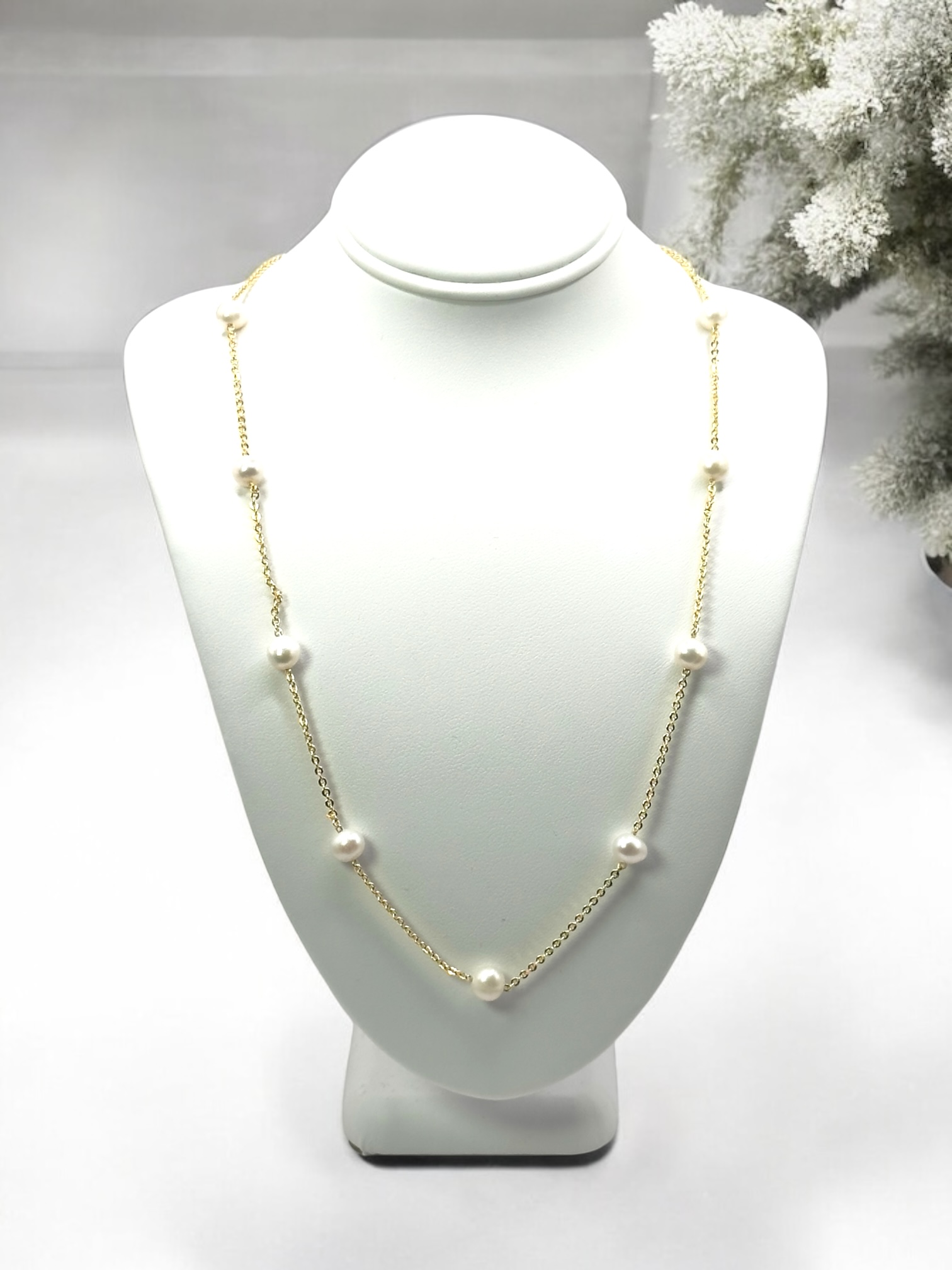 Be the first to review “5 – 6 mm White Pearl Gold Plated Chain Necklace”